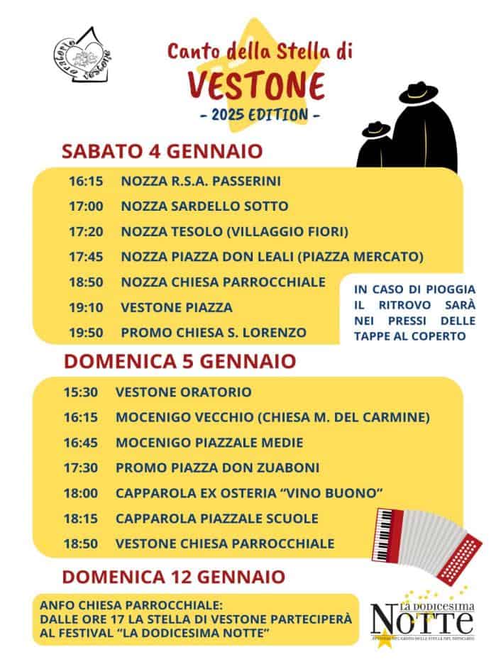 Ricordiamo il CANTO della STELLA per le vie di Nozza e Vestone nelle serate di sabato 4 e domenica 5 gennaio come da programma a lato.